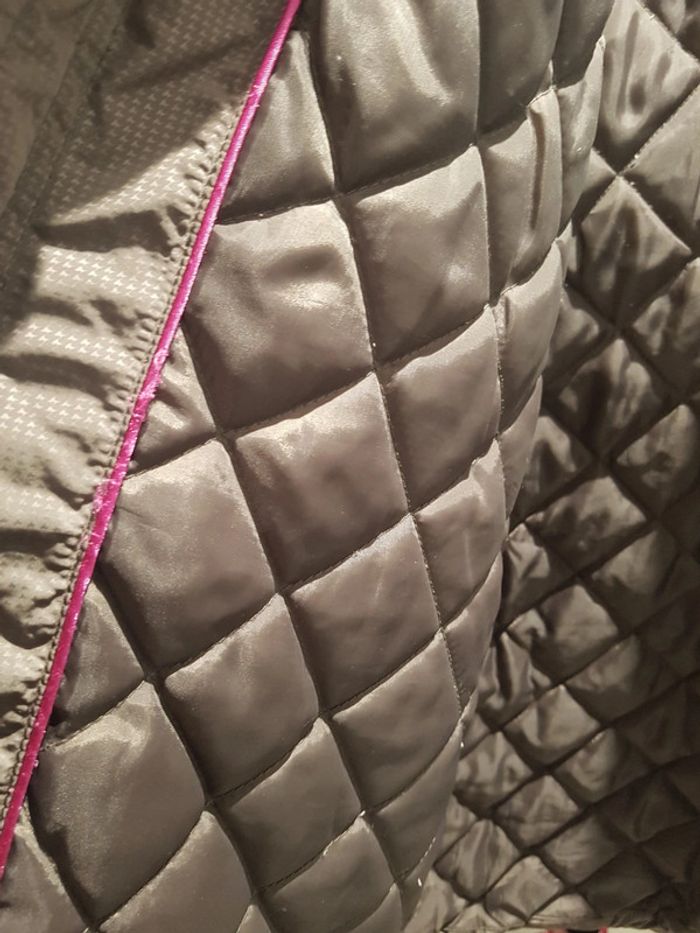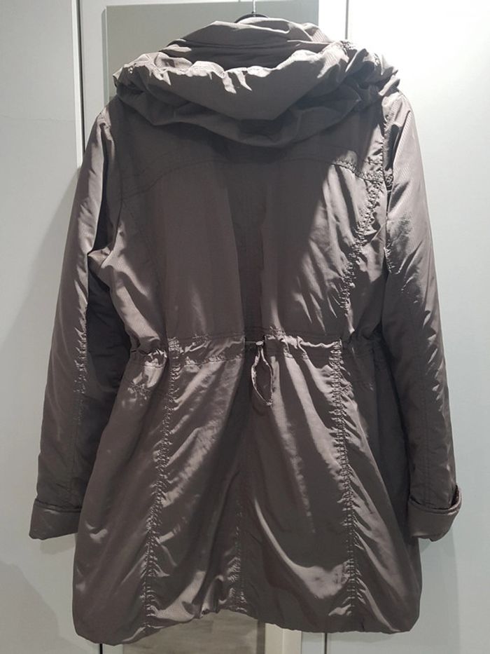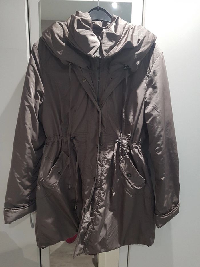 Blouson couleur taupe effet brillant, col boule. Très bon état extérieur légère usure intérieur voir photo.