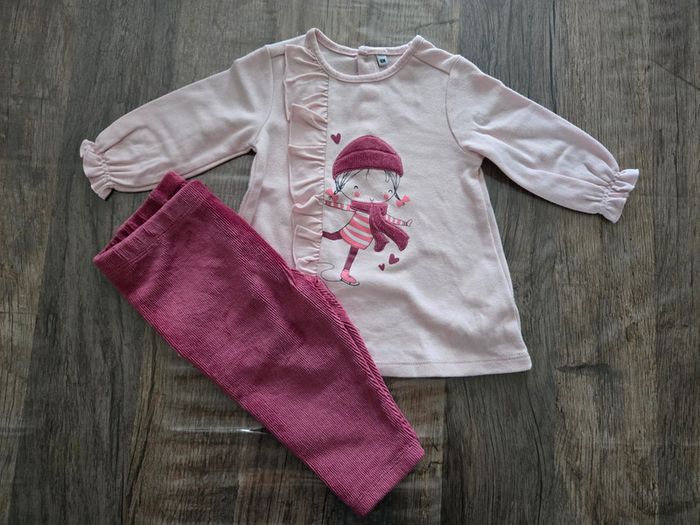 Ensemble tee shirt rose et pantalon rose en velours Taille 6 mois Bon état