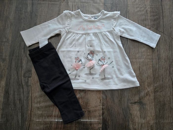 Ensemble tee shirt blanc avec leggings noir Taille 6 mois Bon état