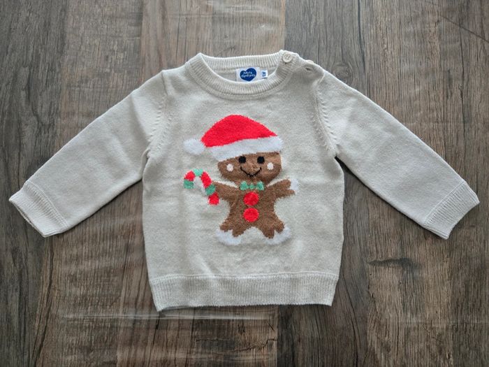 Pull beige avec bonhomme en pain d'épices Taille 6 mois Bon état
