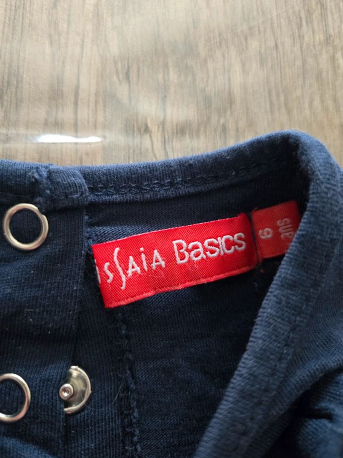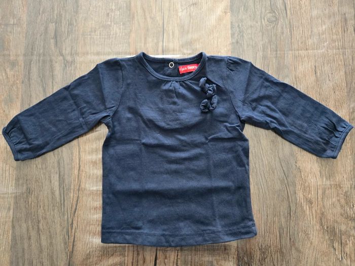 Tee shirt manches longues bleu marine avec 2 petits nœuds au niveau du col Taille 6 mois Bon état