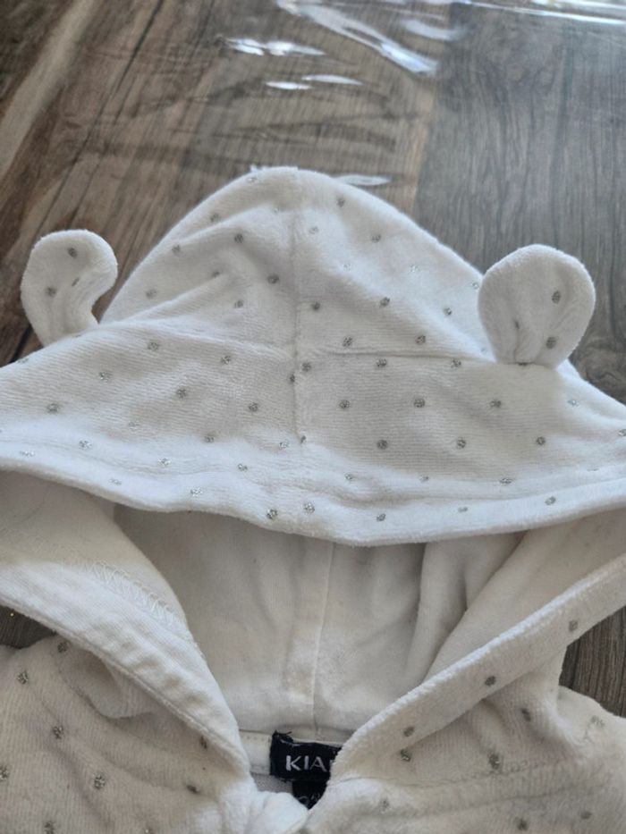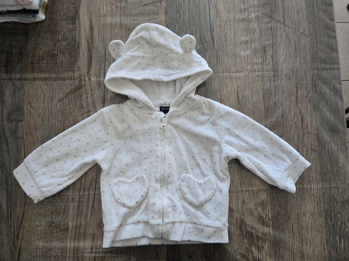 Gilet zippé à capuche blanc et paillettes argentées Taille 6 mois Bon état