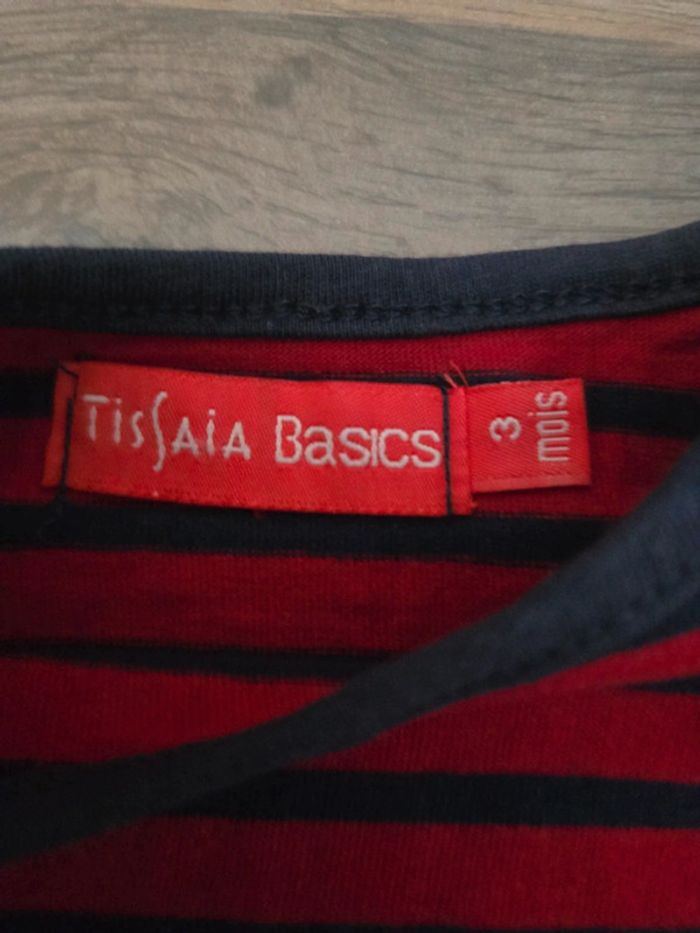 Tee shirt rouge rayé bleu marine Taille 3 mois Bon état