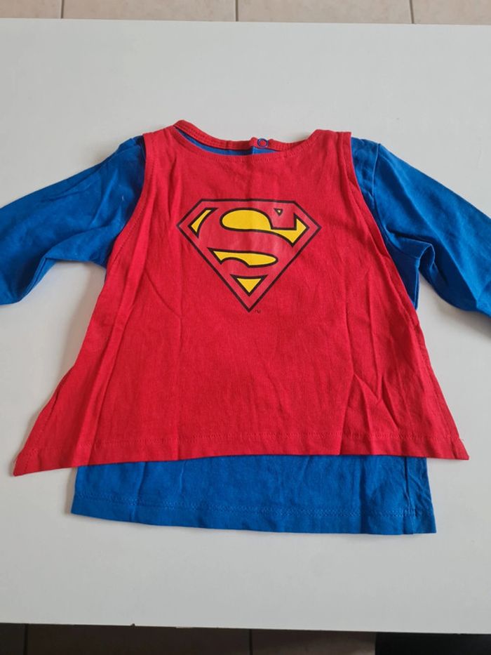 Tee shirt superman avec cape La cape se fixe avec des scratchs sur les épaules Taille 12 mois Bon état