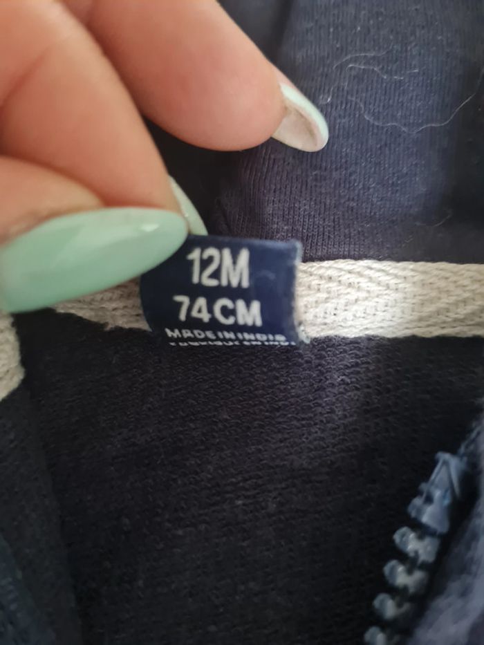 gilet à capuche bleu marine taille 12 mois très bon état