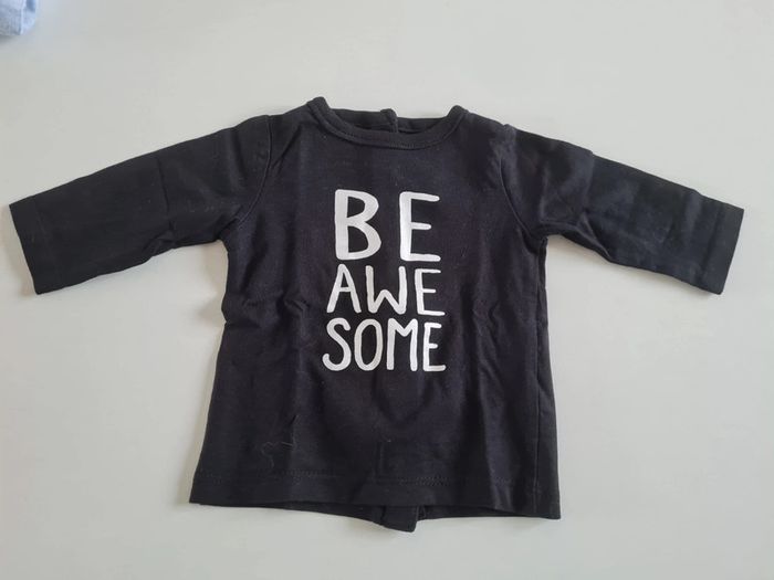 Tee shirt manches longues noir Boutons dans le dos Taille 1 mois Très bon état