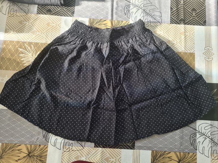 Jupe courte ample noir à pois blancs Taille 38 Bon état