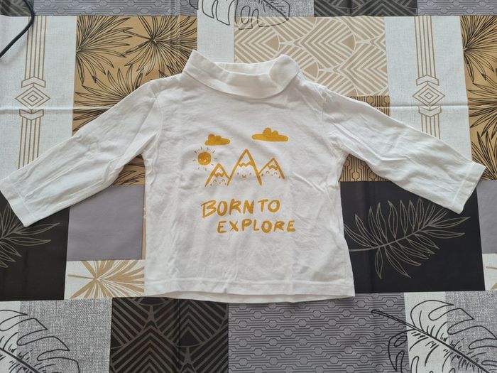 Tee shirt manches longues col roulé blanc Taille 12 mois Jamais porté