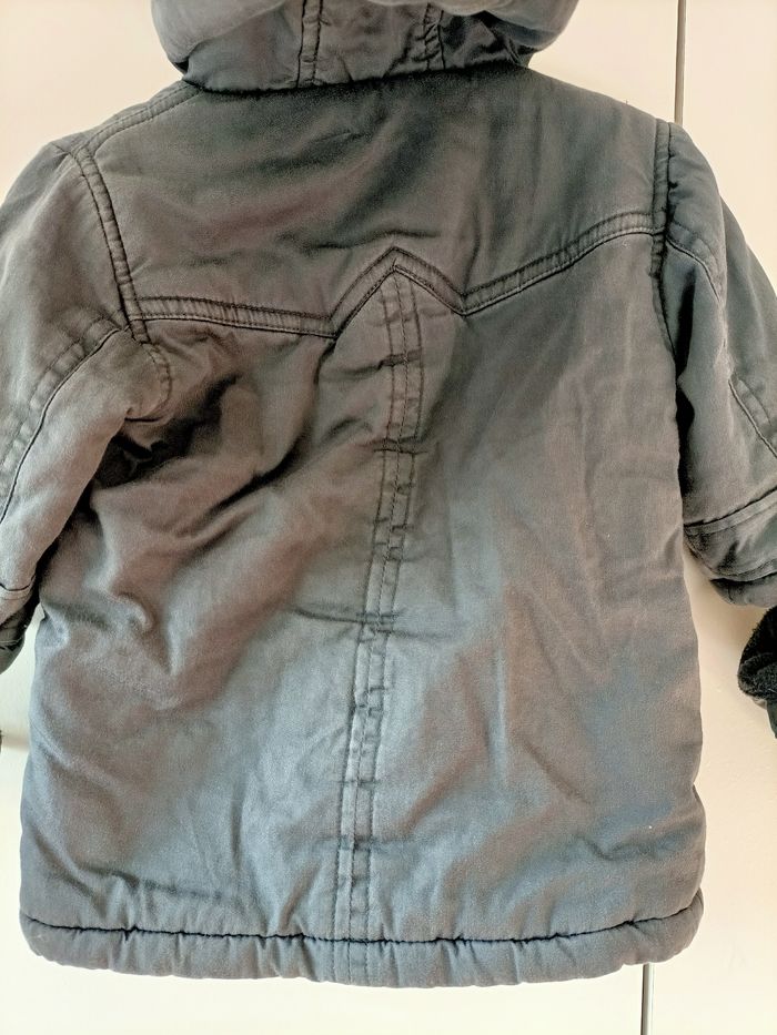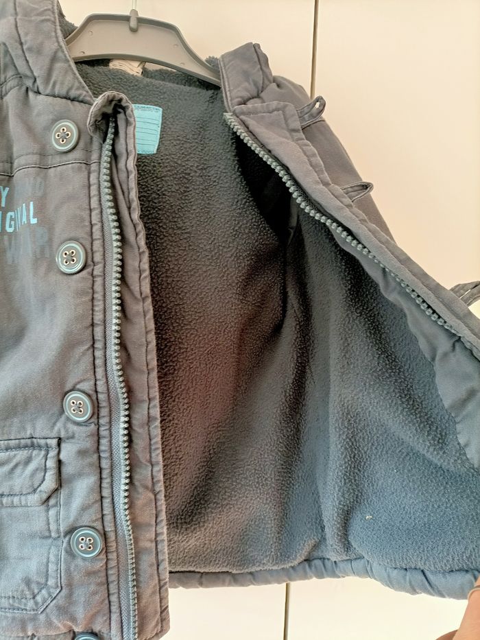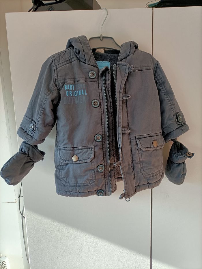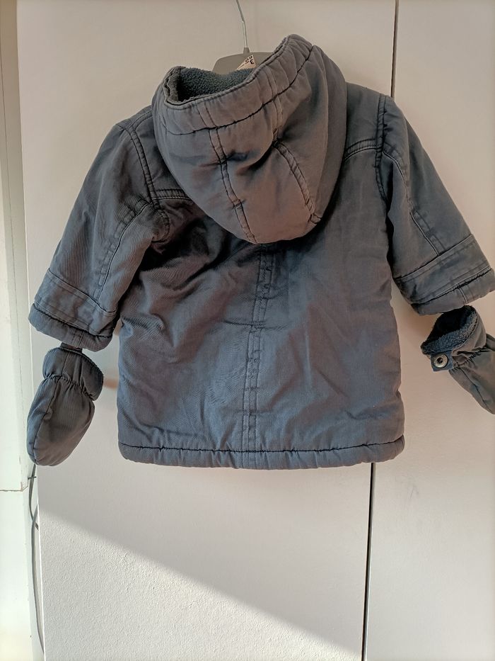 Manteau à capuche garçon, taille 3 mois, bleu avec moufles détachables. Intérieur polaire. 4.50€