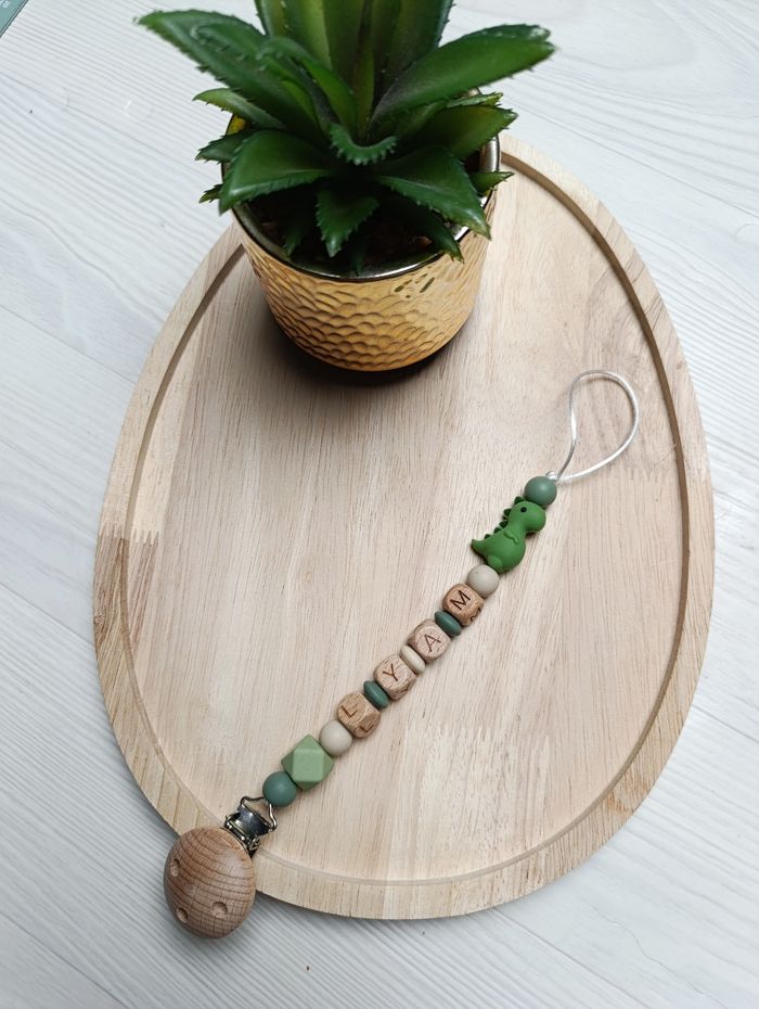 Attache tétine personnalisée Bois naturel et Silicone alimentaire Sans BPA ni autres substances toxiques Différents coloris possibles