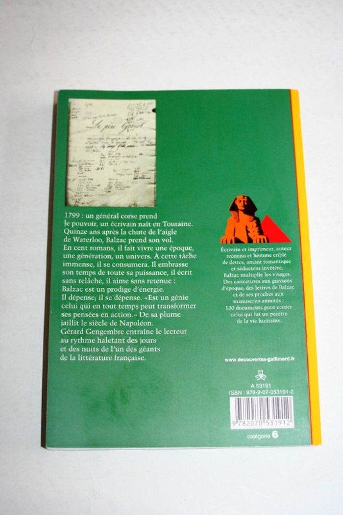 Balzac le Napoléon des lettres de Gérard Gengembre, 208 pages, 300g Poids de l'article ‏ : ‎ 310 g Dimensions ‏ : ‎ 12.5 x 1.6 x 17.8 cm 1799 : un général corse prend le pouvoir, un écrivain naît en Touraine. Quinze ans après la chute de l'aigle de Waterloo, Balzac prend son vol. En cent romans, il fait vivre une époque, une génération, un univers. À cette tâche immense, il se consumera. Il embrasse son temps de toute sa puissance, il écrit sans relâche, il aime sans retenue : Balzac est un prodige d'énergie. Il dépense, il se dépense. "Est un génie celui qui en tout temps peut transformer ses pensées en action." De sa plume jaillit le siècle de Napoléon. Gérard Gengembre entraîne le lecteur au rythme haletant des jours et des nuits de l'un des géants de la littérature française.