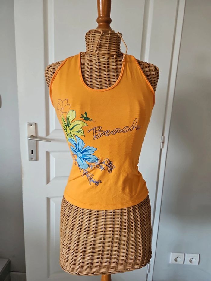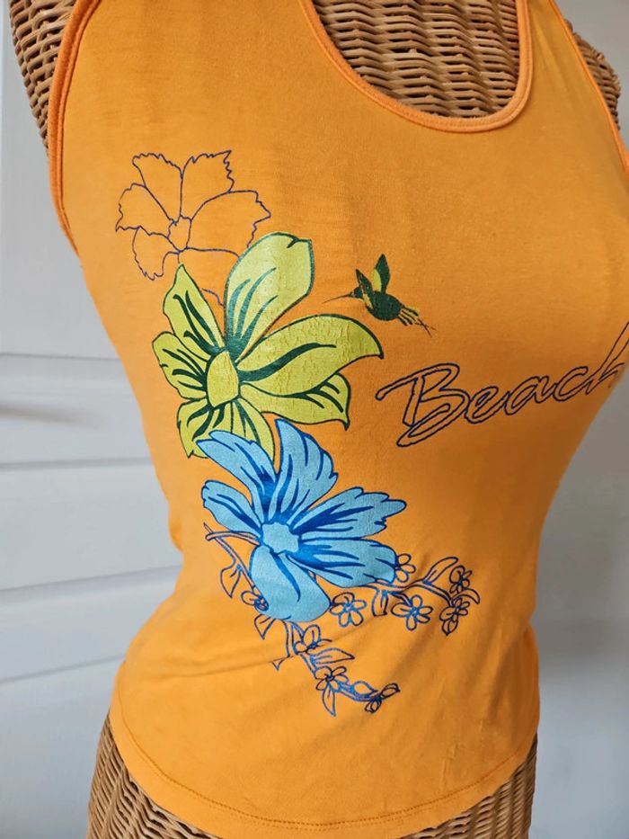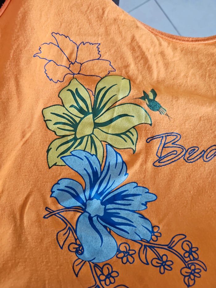 Débardeur femme orange Motif beach fleurs Un.peu craquelé au niveau des fleurs cf photo N'hésitez pas à aller voir mes autres ventes classées par #eloio #eloiofemme #eloiofemmem #eloiofilleado