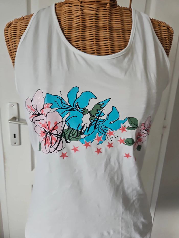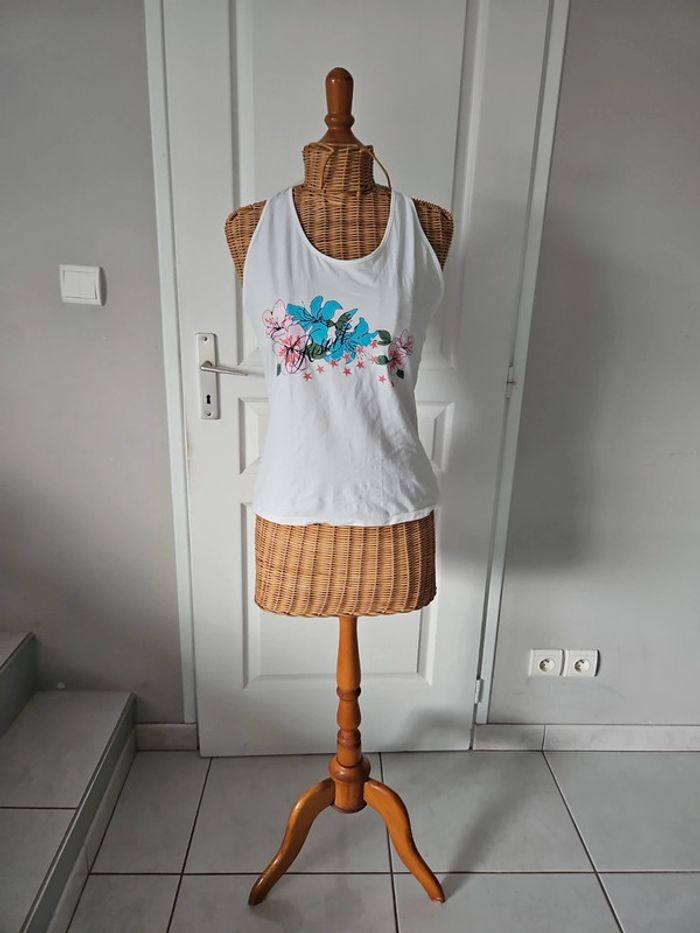 Débardeur femme blanc dos nu motif fleur Alizé diffusion N'hésitez pas à aller voir mes autres ventes classées par #eloio #eloiofemme #eloiofemmexl