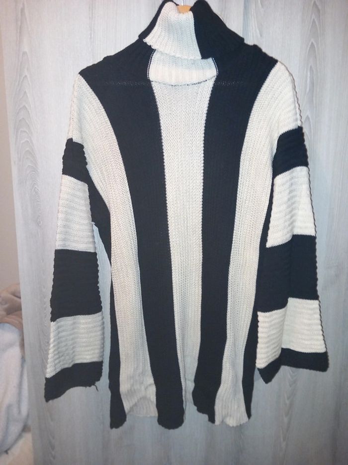 Robe pull Col rouler beige et noir manche evaser neuve