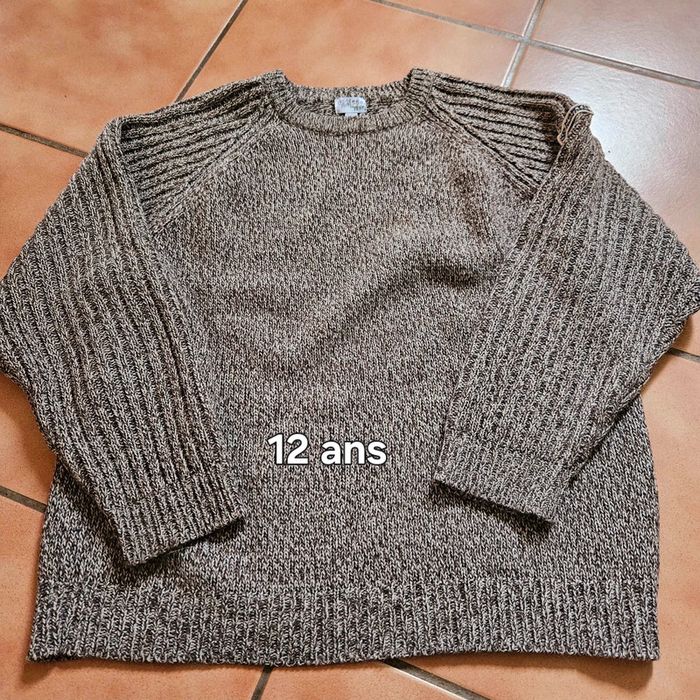 Beau pull col rond, taille 12 ans, marron chiné, taille 11-12 ans 🎁 N'hésitez pas à faire des lots pour bénéficier de réductions.