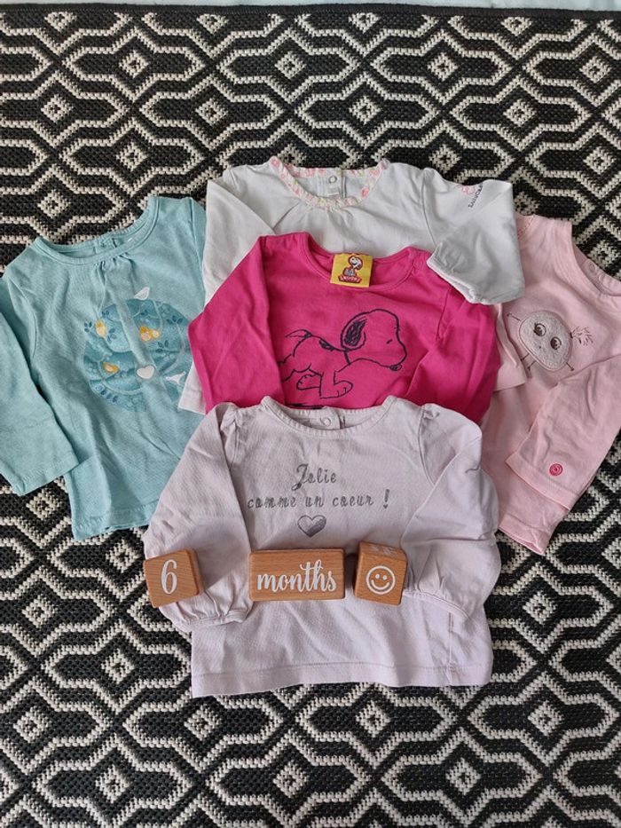 Lot 5 T-shirts ML 6 mois - photo numéro 1