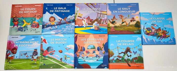 Je vends ce lot de neuf livres de la collection 2024 des livres Mc do : - le cours de hip-hop - le gala de patinage - l'entraînement de football - le tournoi de karaté - le match de rugby - les épreuves d'escrime - le saut en longueur - la course de relai - la classe de ski #Estelle2150_livres_enfants #livresmcdo2024 #livresmcdo
