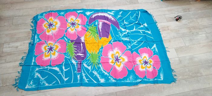 Je vends ce paréo de couleur bleue avec des fleurs, qui mesure 110cm par 170cm. #Estelle2150_accessoires