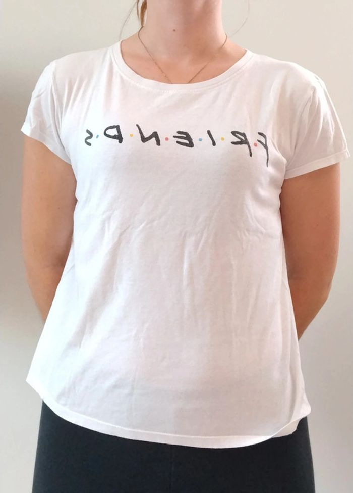 Je vends ce t-shirt de couleur blanche noté "F.R.I.E.N.D.S", en taille M et de la marque Friends. #Estelle2150_femme