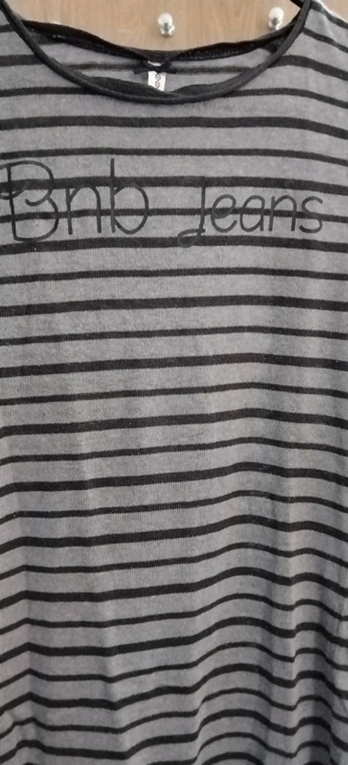 Je vends ce pull de couleur rayée dans deux tons de gris. Il est de taille S et de la marque Bonobo. Le pull fait 60 cm de long et 32 cm de large au niveau des épaules. #Estelle2150_femme #dressingVD