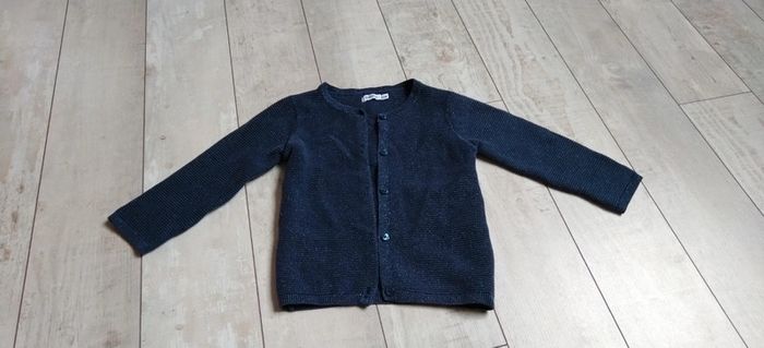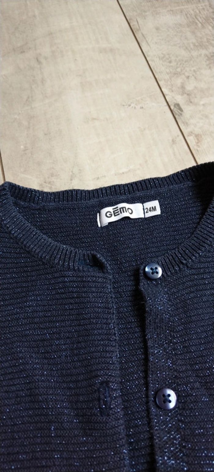 Je vends ce gilet de couleur bleu marine avec des fils argentés, de la marque Gémo et en taille 24 mois. #Estelle2150_enfant_24mois