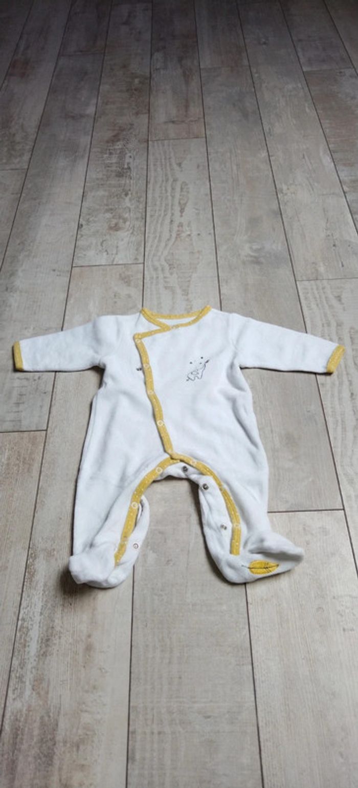Je vends ce pyjama de couleur blanche avec un liseré de couleur jaune, en taille 3 mois. #Estelle2150_enfant_3mois