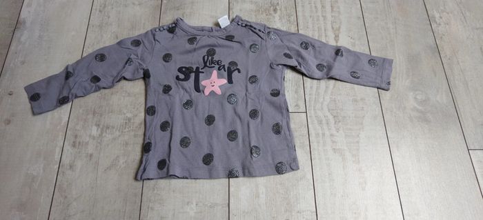 Je vends ce t-shirt à manches longues de couleur grise à pois, de la marque TeX et en taille 18 mois. #Estelle2150_enfant_18mois