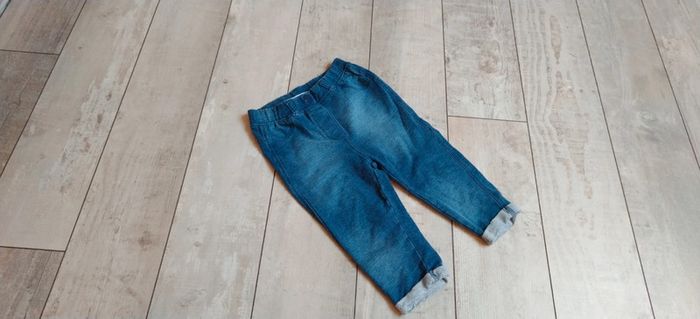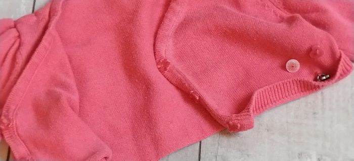 Je vends cet ensemble composé d'un pantalon de couleur bleue et d'un t-shirt de couleur blanche, de la marque Bébé rêve, ainsi que d'un gilet de couleur rouge/rose de la marque Sergent Major. #Estelle2150_enfant_12mois