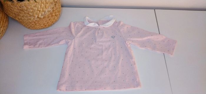 Je vends ce lot composé d'un pantalon de couleur bleue foncée et d'un t-shirt de couleur rose de la marque Obaïbi #Estelle2150_enfant_9mois