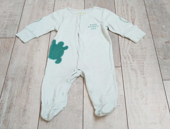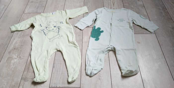 Je vends ce lot de 2 pyjamas de couleur vert pâle, en taille 3 mois et de différentes marques #Estelle2150_enfant_3mois