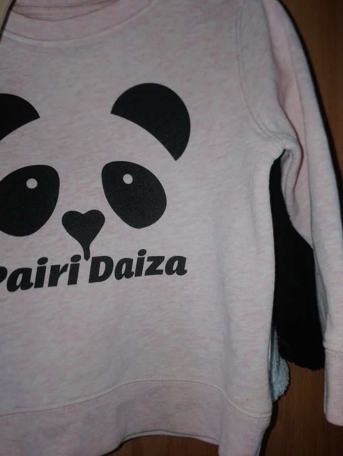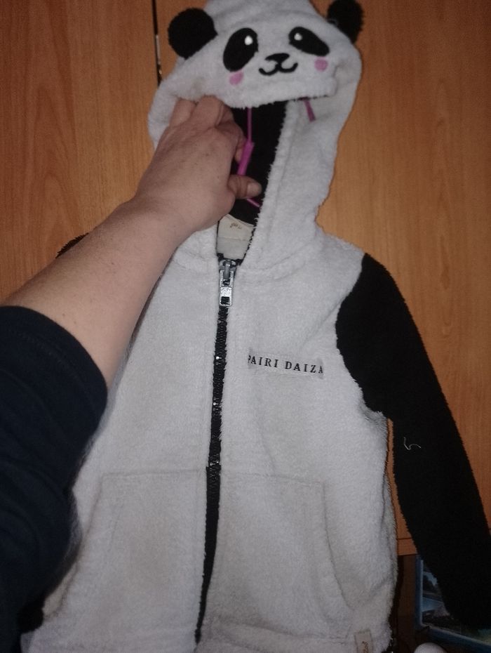 Gilet et pull Pairi Daiza 2-4ans 25 euro pièce Pull 25 euro Pull rose, tête de panda 3-4 ans ( 98-104cm) Gilet 25euro Blanc et noir avec capuche tête et oreille de panda 2 - 4 ans Zoozoo Valeur au zoo environ 50€