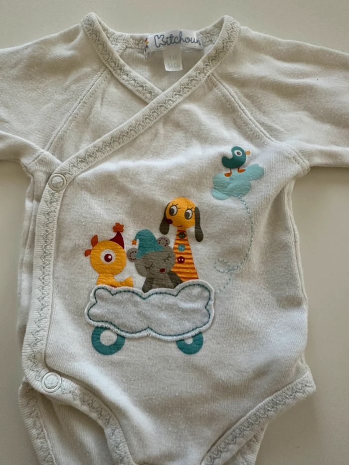 Body manches longues blanc avec dessin sur le devant. Fermeture sur le devant en cache-cœur avec des boutons pression. 3 boutons pression à l’entrejambe. Taille: 1 mois - 54 cm Marque: Kitchoun En très bon état. Ni trou, ni tâche. #kuchpix1mois #bodymancheslongues #bodymancheslongues1mois #body1mois #kitchoun1mois