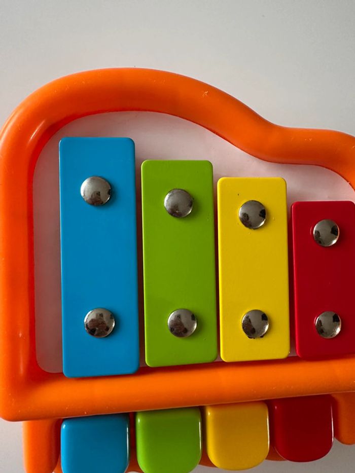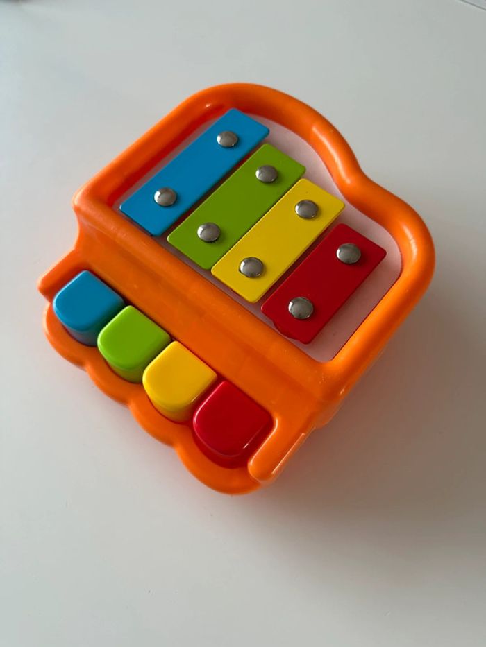 Piano Xylophone 2 en 1 pour bébé. Couleurs attrayantes pour les petits. Idéal pour l’éveil musical. Jouet en plastique et métal (lames du dessus). Quelques traces d’usure mais toujours en bon état. #kuchpixjouets #pianobebe #pianobebeeveil