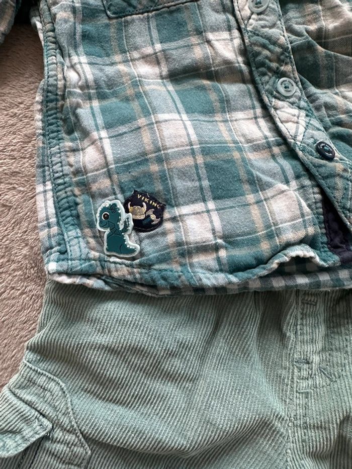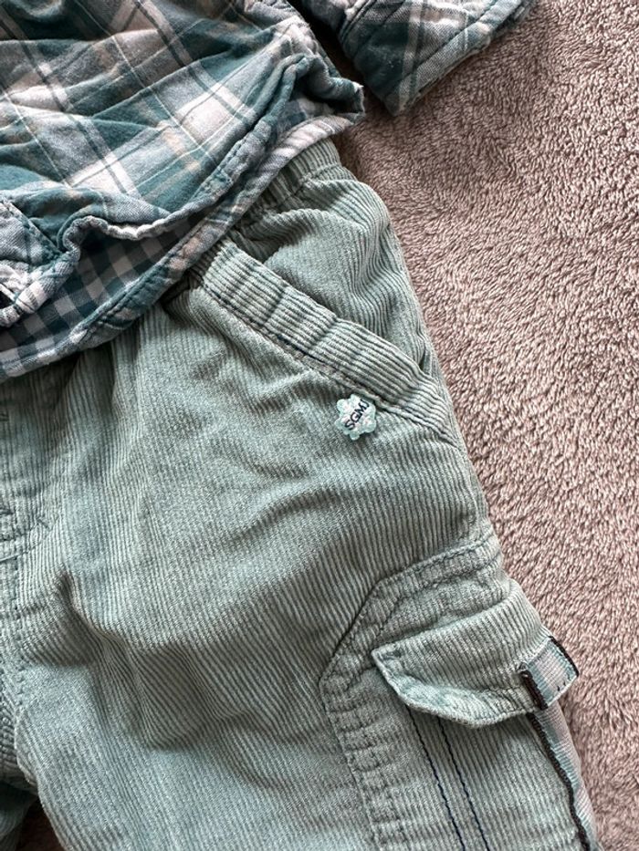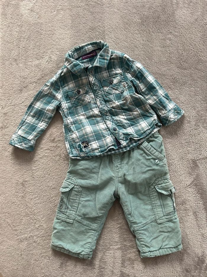 Ensemble garçon composé de : - un pantalon en velours côtelé, doublé, de couleur turquoise - une chemise à carreaux dans les tons turquoise Taille: 9 mois - 71 cm Marque: Sergent Major En très bon état. Ni trou, ni tâche. Une légère trace sur le bouton du pantalon (voir photos). #kuchpix9mois #9moisgarcon #ensemble9moisgarcon #garcon9mois #sergentmajor9mois #sergentmajor9moisgarcon