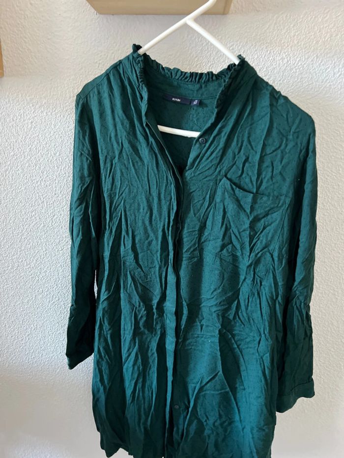Robe chemise verte avec petit point noir et poche - photo numéro 1