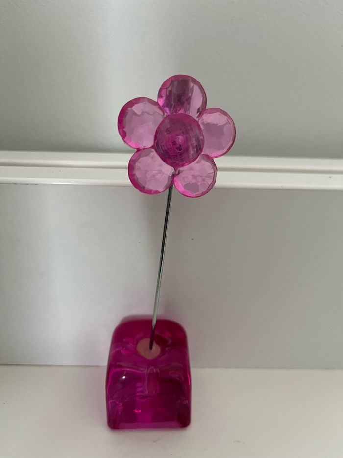 Socle en forme carré de glaçons Forme de fleur avec la pince pour accrocher la photo. Couleur : fuchsia Dimension : Hauteur : 13 cm Largeur : 3 cm Longueur : 3 cm