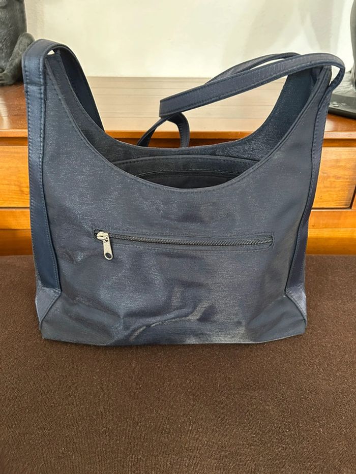 Sac bandoulière femme marine Hauteur prise au milieu 21 cm Longueur 31 cm Largeur 11 cm
