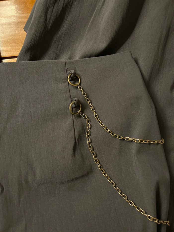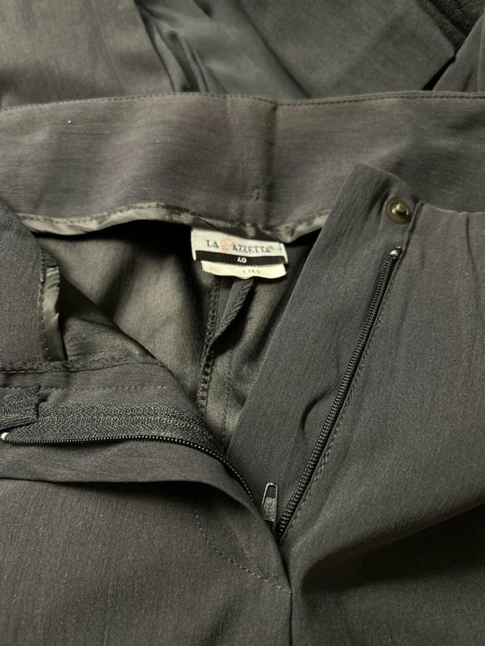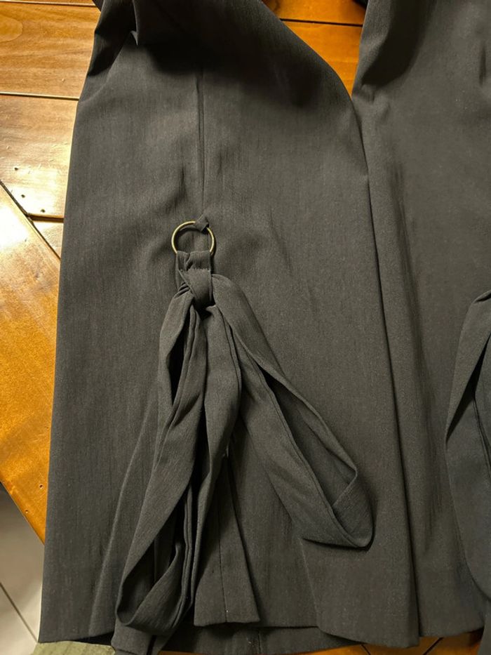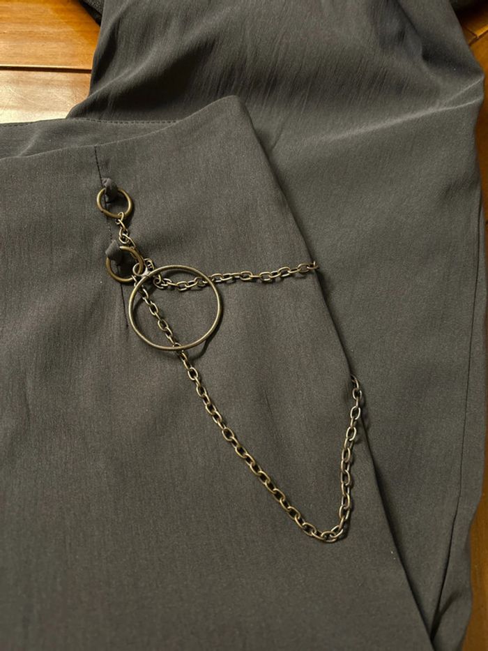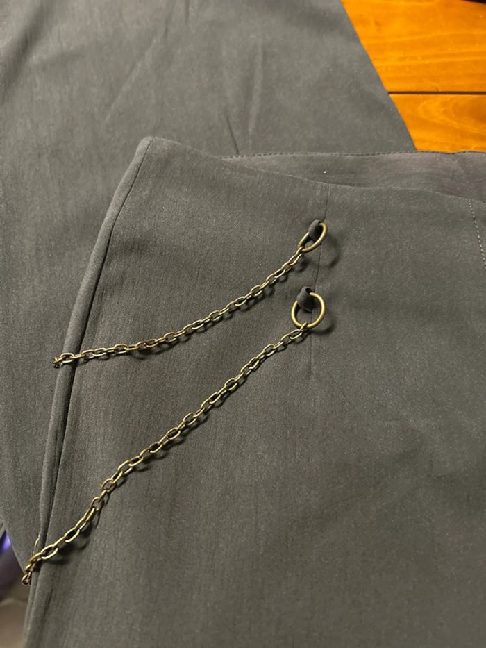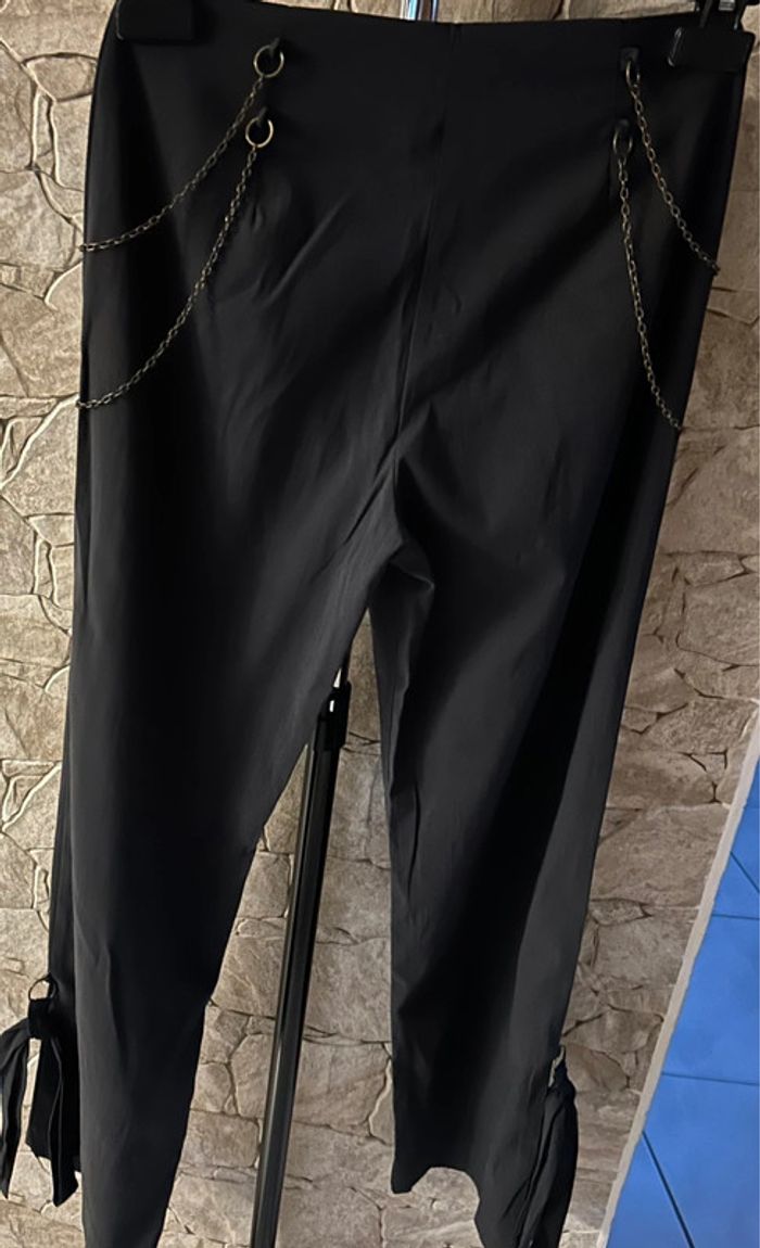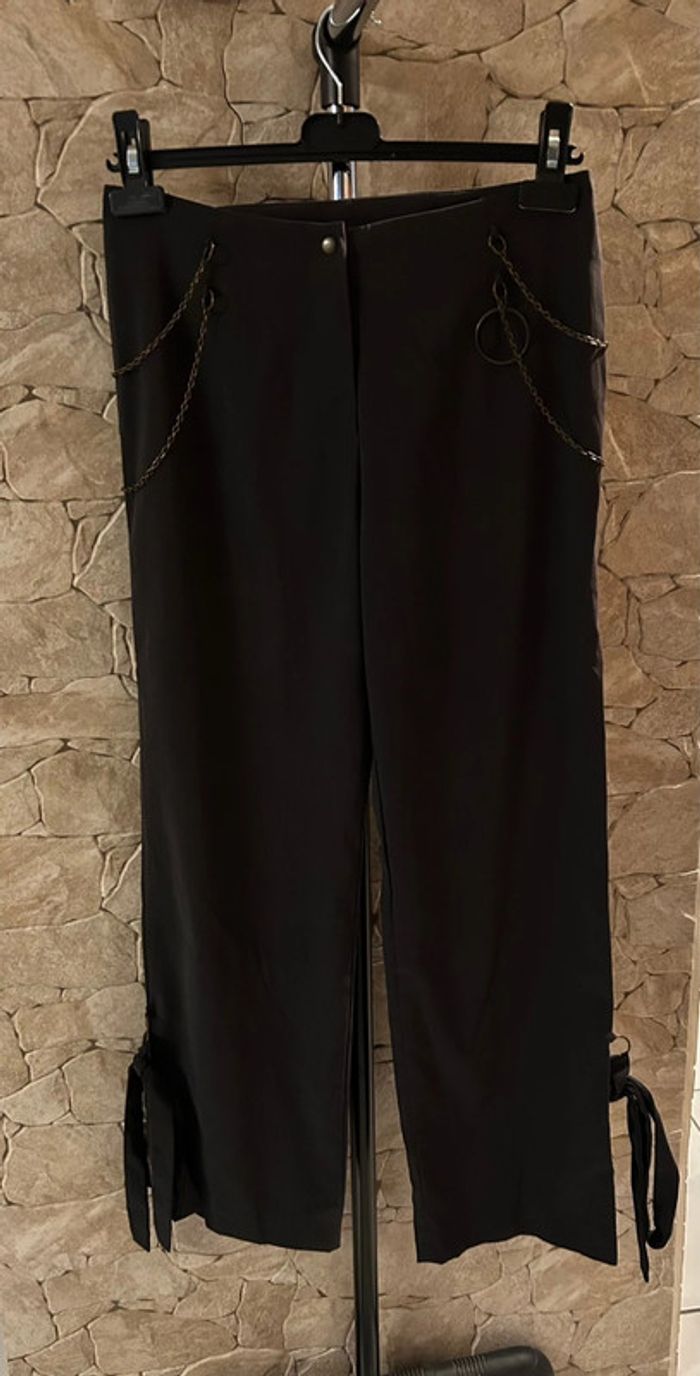 Pantalon femme Fermeture éclair + bouton pression 2 chaînettes de chaque côté Un noeud en bas de chaque côté Taille 40