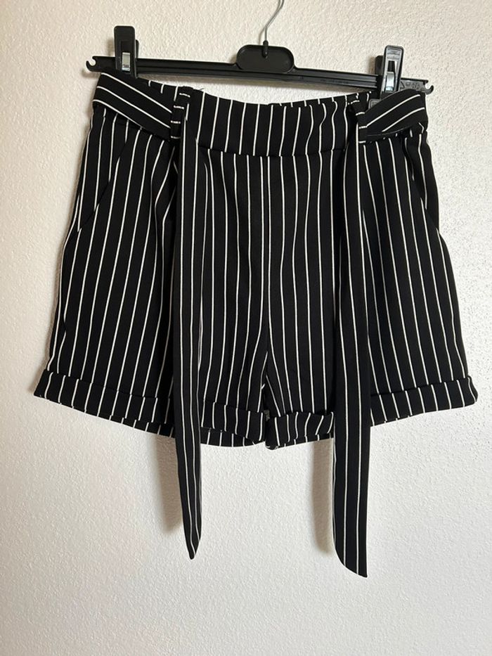 Short rayé noir et blanc 2 poches Ceinture cousue Taille unique