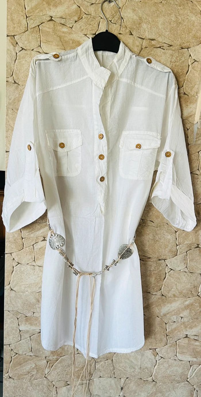 Chemise blanche xxl Manches longues avec bouton pour les raccourcir + ceinture