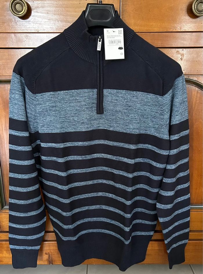 Pull homme Avec fermeture éclair Taille M Largeur sous aisselles 54 cm (Pas de couture aux épaules)