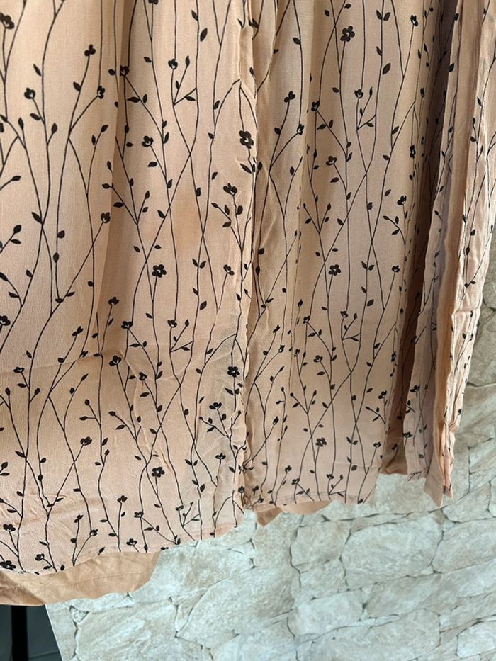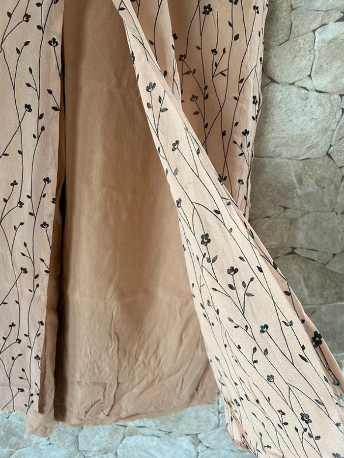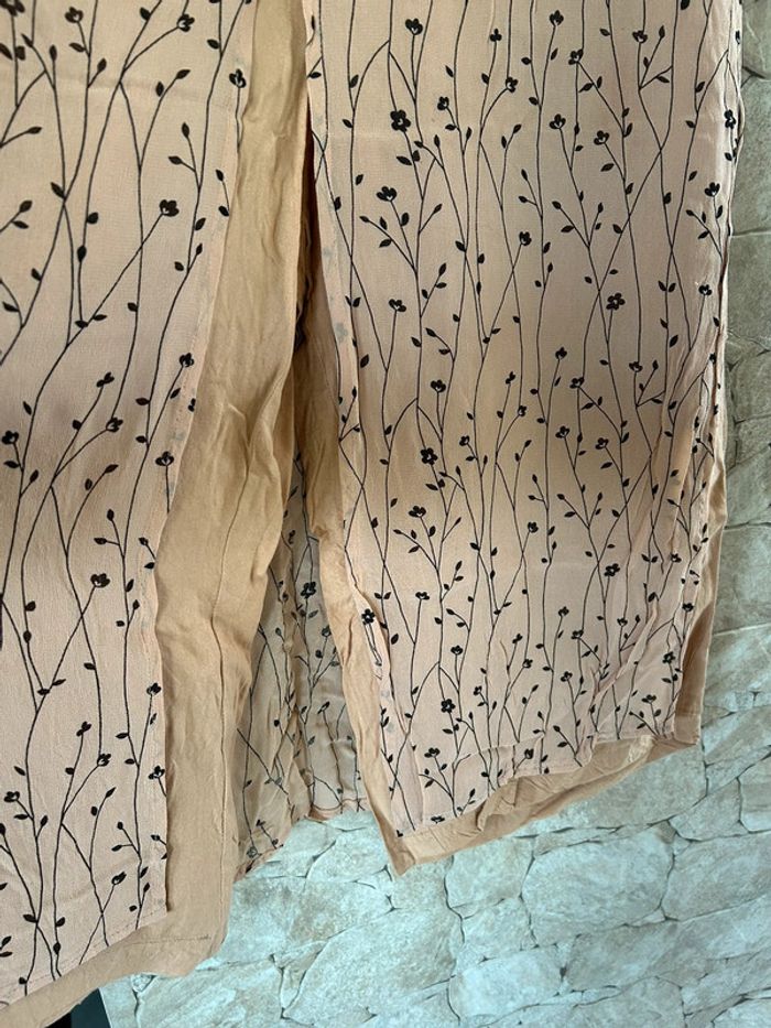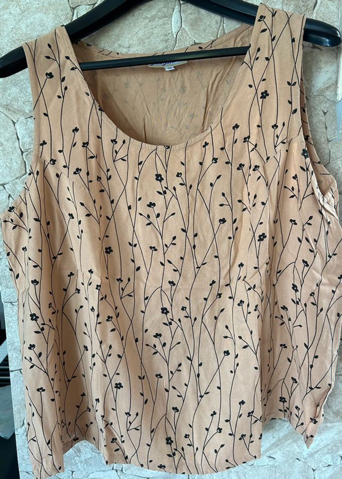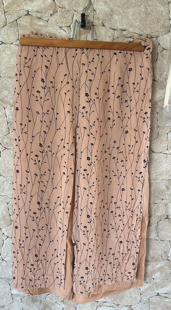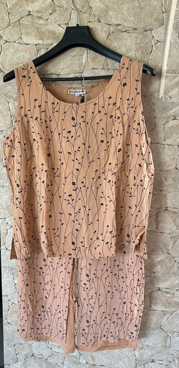 Pantacourt avec voile fendu sur les côtés Fermé derrière pour faire effet jupe Taille élastique derrière Fermeture éclair sur le côté Débardeur Largeur épaule 41 cm Sous aisselles 57 cm Longueur 65 cm