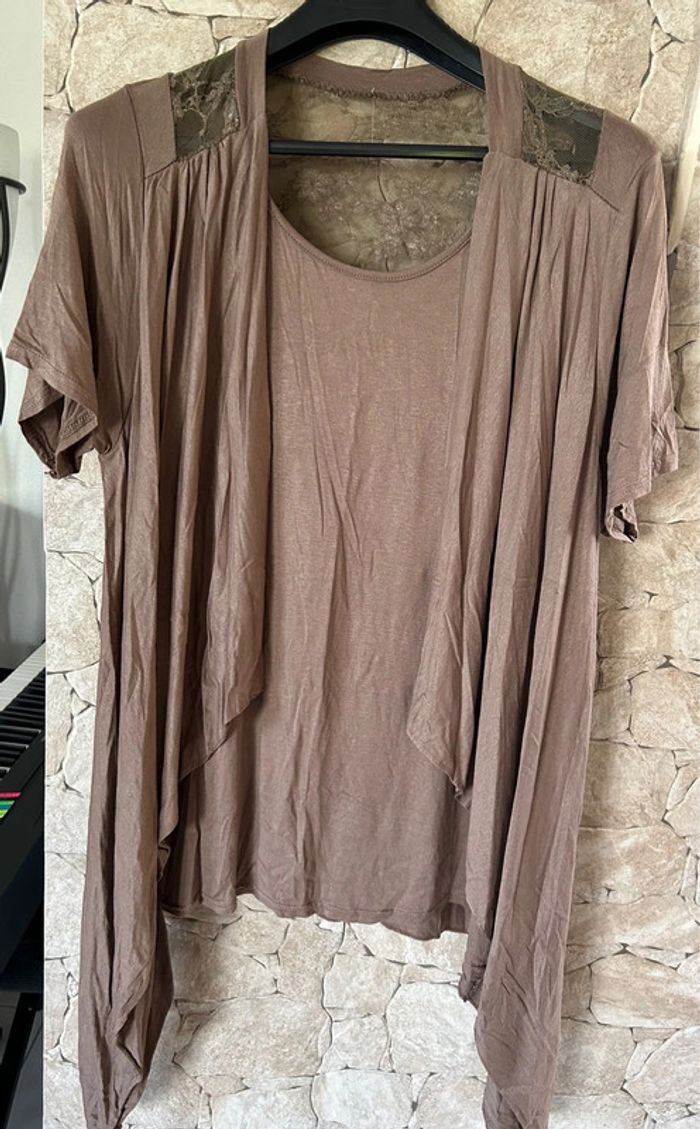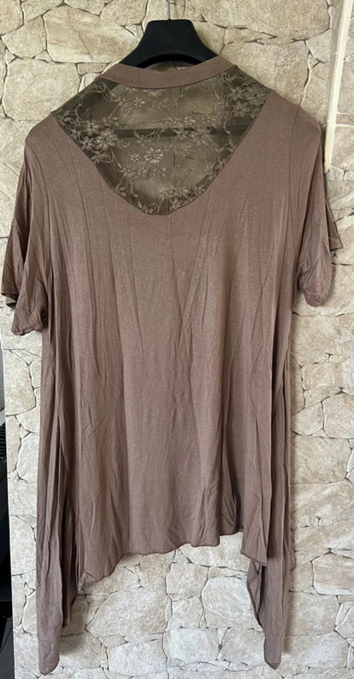 Tunique avec de la dentelle sur les épaules et le dos La longueur est du T-shirt La pointe fait 20 cm de plus