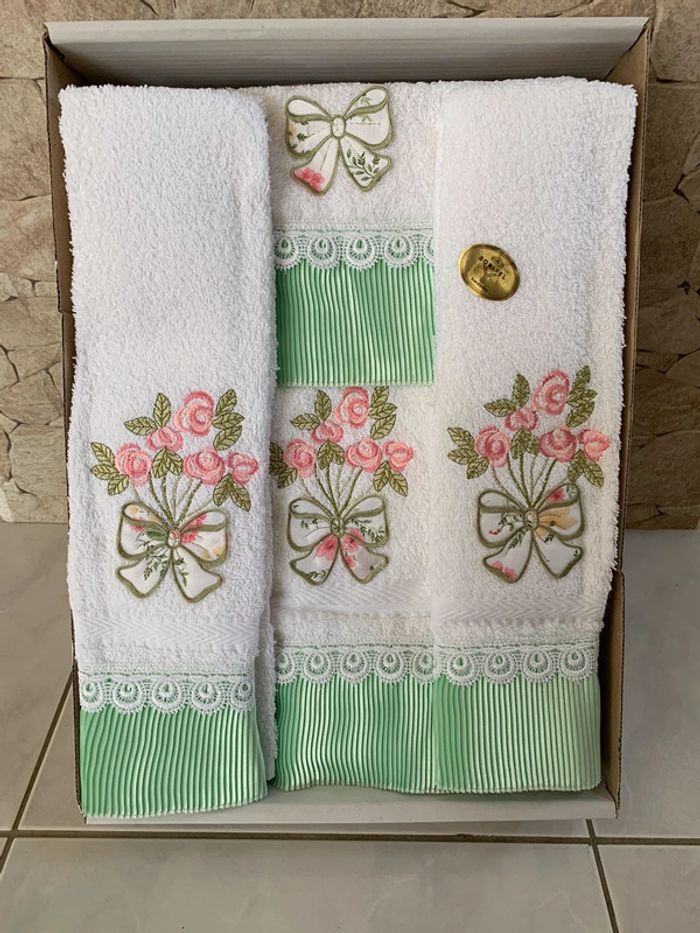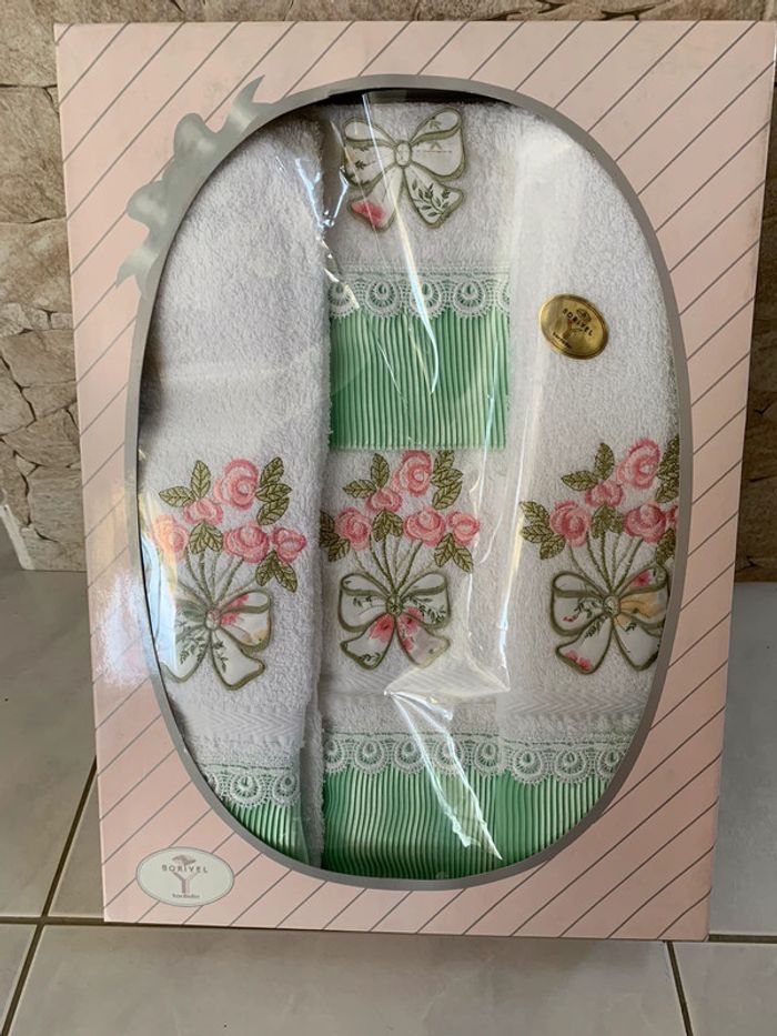 Ensemble 5 pièces 1 drap 100 x 150 cm 2 serviettes 50 x 90 cm 2 serviettes 35 x 50 cm La boîte est légèrement abîmée Neuf