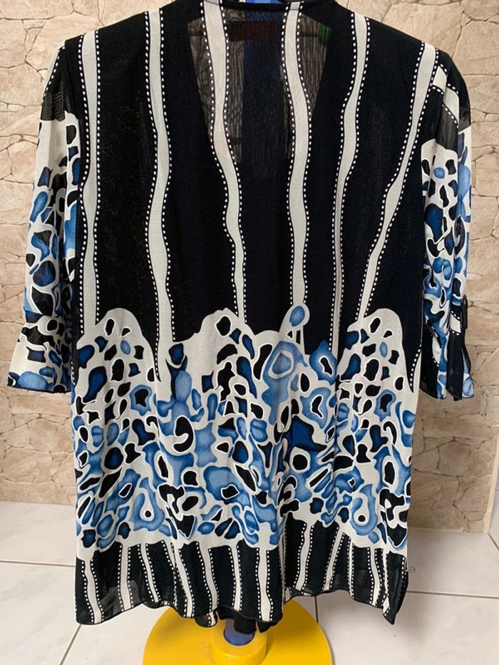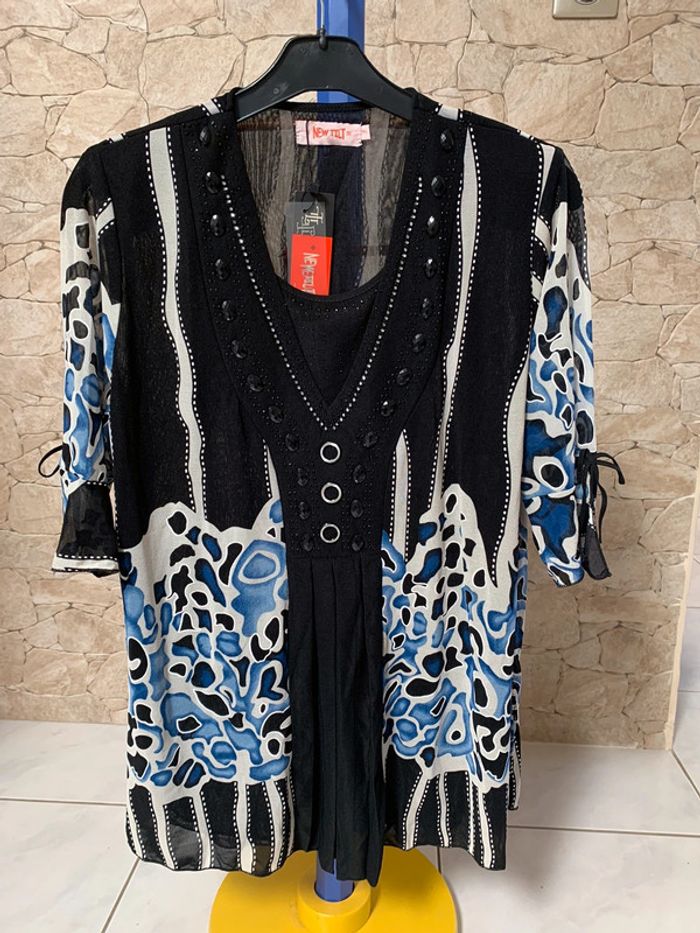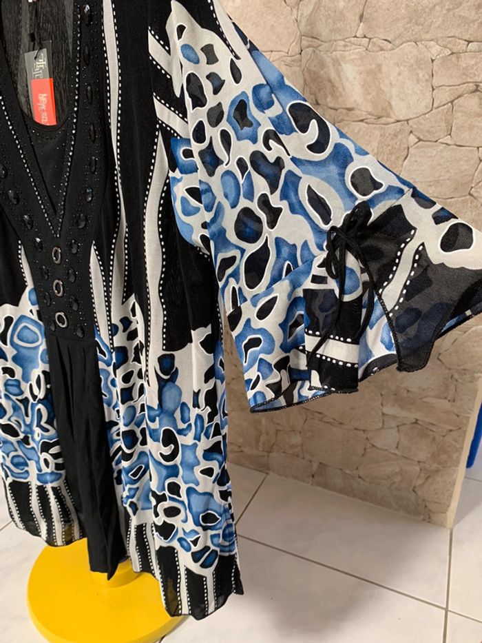 Tunique fluide Noire bleue écru Manches 3/4 70% viscose 25% polyester 5% elasthane Taille M/L Neuve