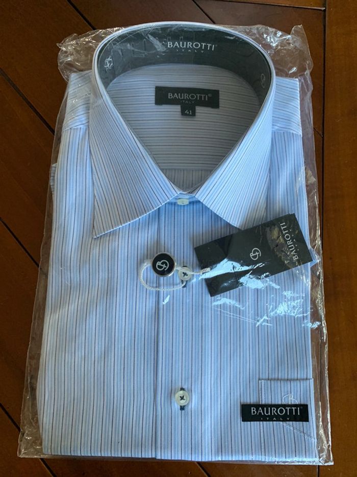 Chemise homme Manches courtes Rayée Bleu ciel et bleu foncé 1 poche Taille 41 Neuve