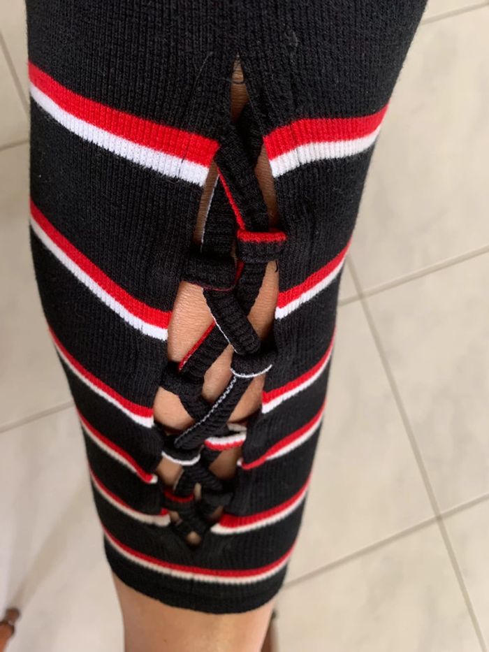 Body noir rayé rouge et blanc Manches courtes ouvertes Taille L