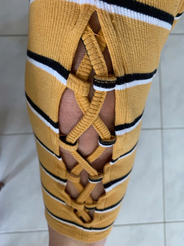 Body moutarde rayé Manches courtes ouvertes Taille L