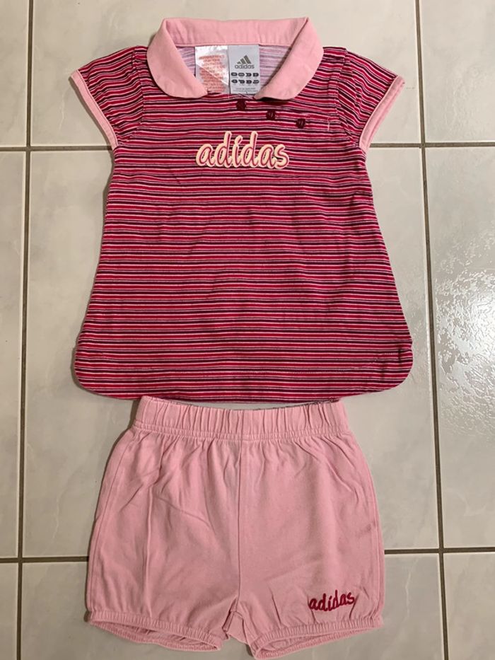 Robe Adidas rayée rose, fuchsia et Bordeaux short Adidas rose taille 6 mois