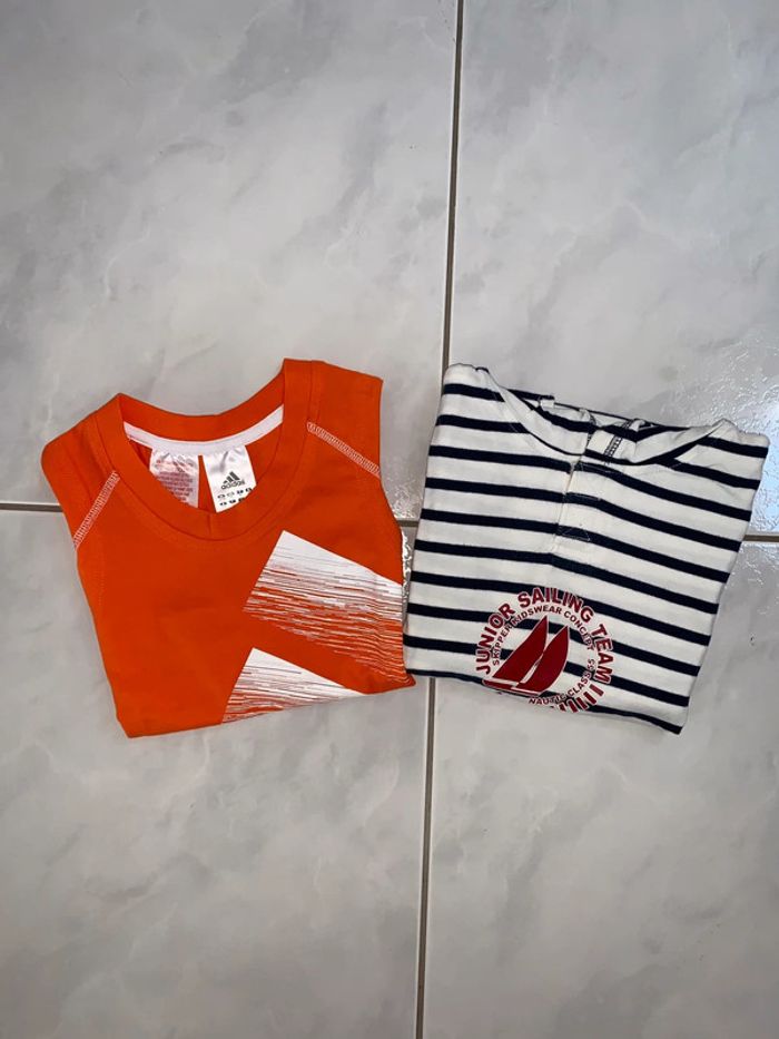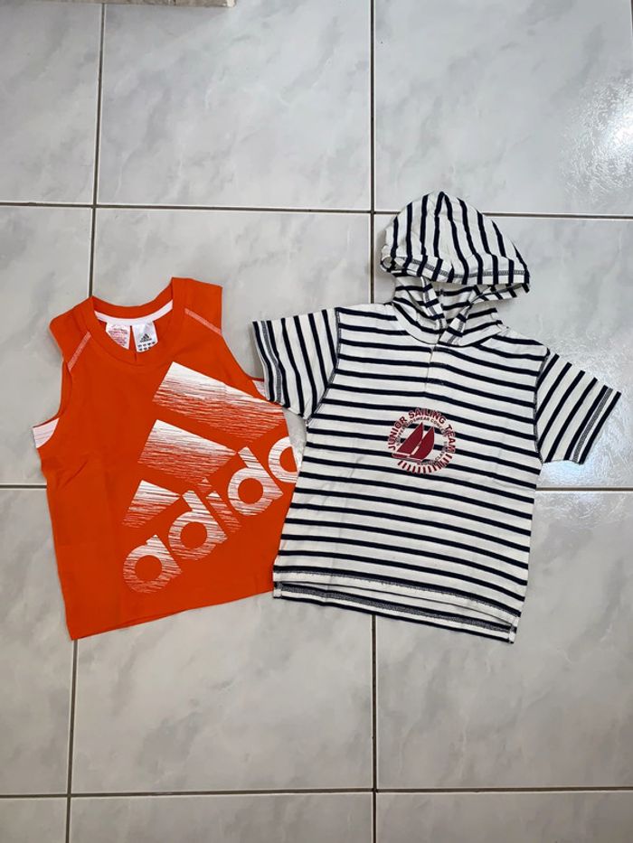 Lot de 2 t-shirts 1 rayé à capuche 6 ans 1 orange Adidas marqué 8 ans mais taille petit plutôt 6ans